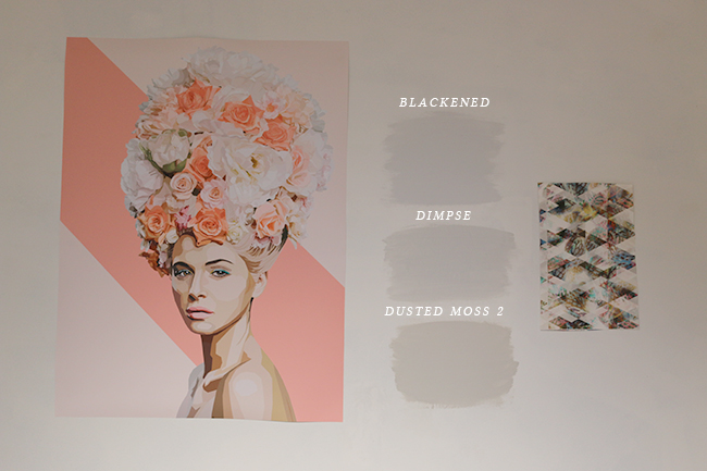 Anyway, neither of those were the colour I chose. I also got samples of Farrow & Ball Blackened, Dimpse and their new colour Dropcloth. As soon as I opened the tin for Dropcloth, I knew it would read way too beige for what I wanted in here so dismissed that immediately. But Dimpse and Blackened were both rather lovely.