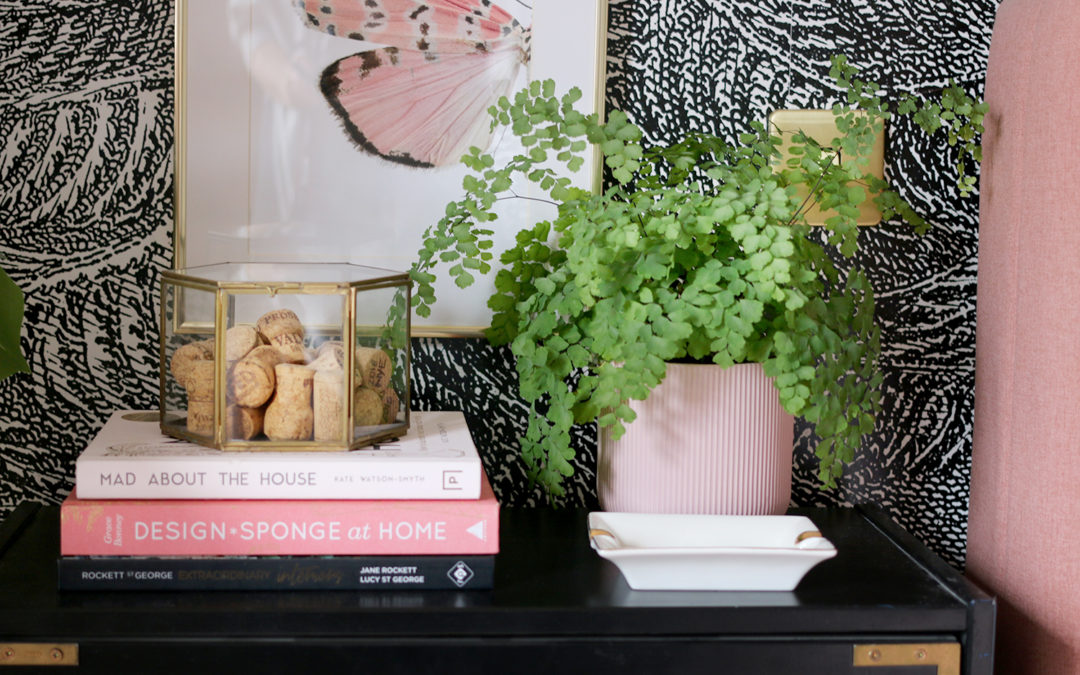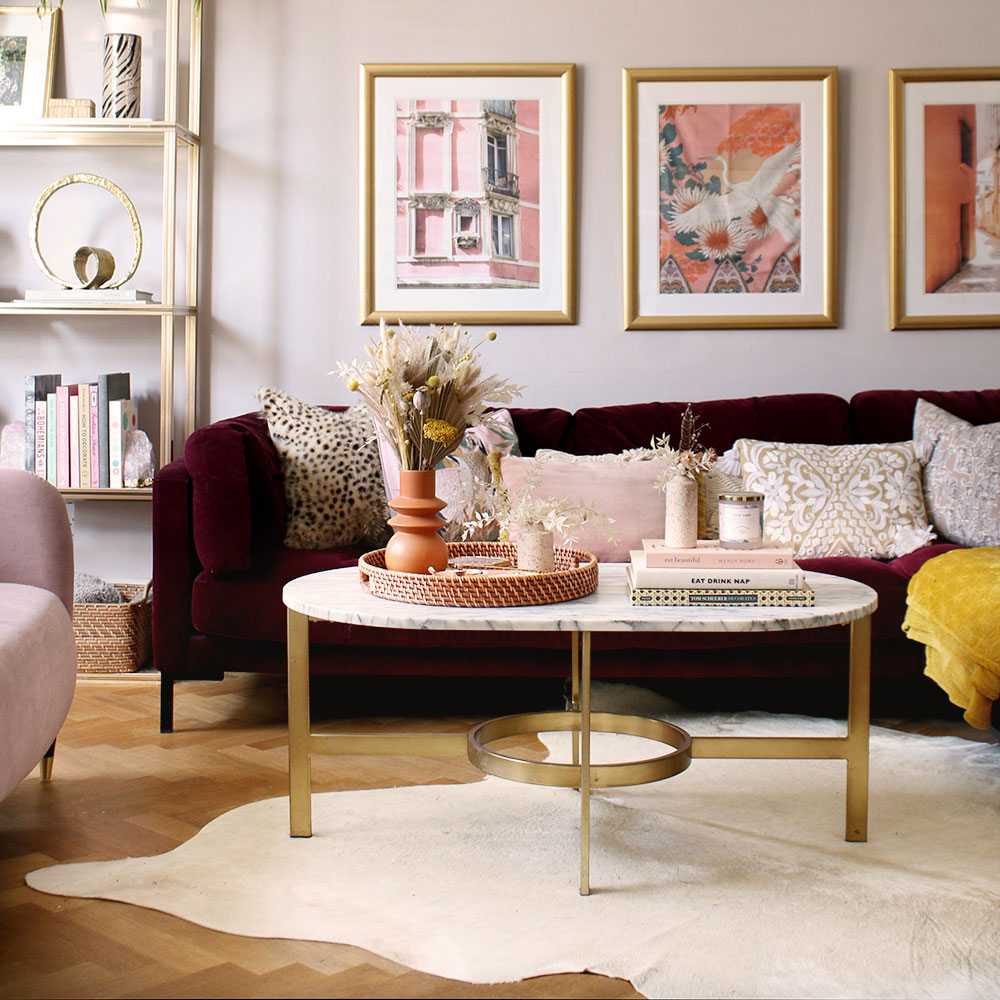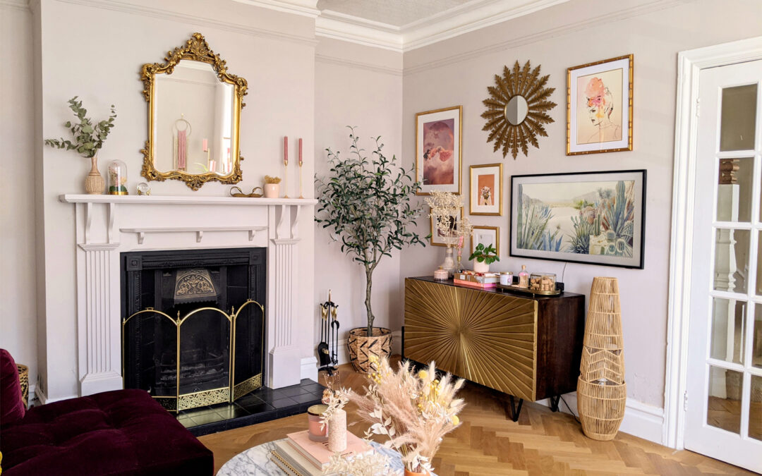 I’m an unashamed maximalist who loves colour, pattern and interiors with personality. I believe anyone can have a beautiful home, no matter what your budget, as long as you’re willing to put the work in. I describe my style as ‘eclectic boho glam’ – a glorious mix of shiny things + comfy things. Want to hear more? Click that link below.
