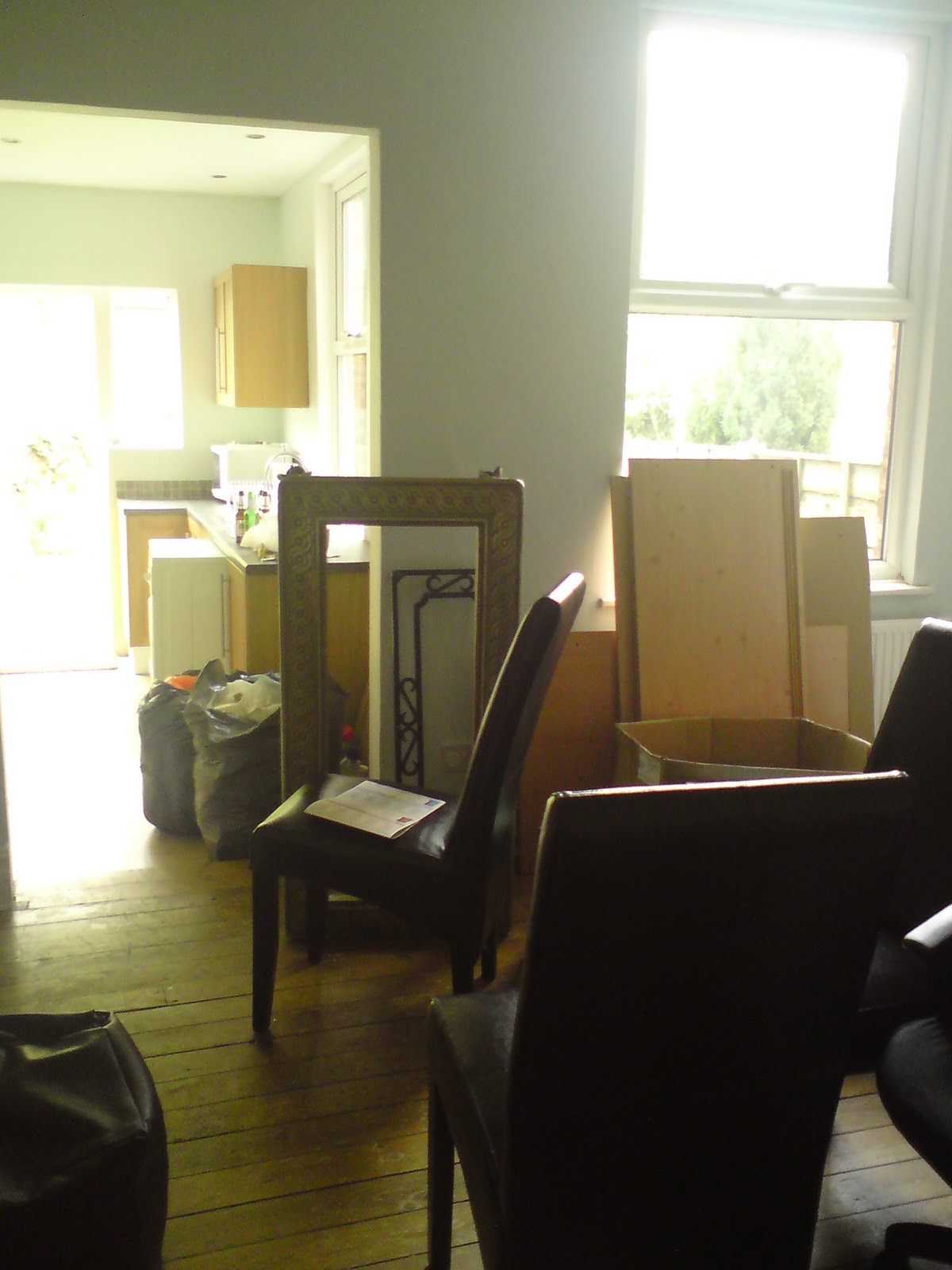 I have to say, despite there being so much left to do, the dining room is finally starting to look like a real room.Β Just as a gentle reminder this is what it looked like the morning after we moved in: