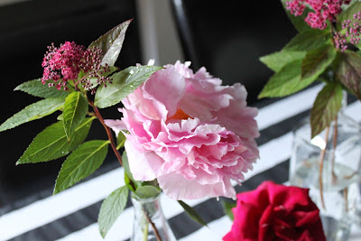 Oh Red, I think we have twin minds! Not only do we have similar (fabulous) styles, we both love the casual glass bottles and flowers thing! Just took a quick pic of mine sat atop a bookshelf – <a href="http://i1221.photobucket.com/albums/dd464/first_sense/Bottles%20and%20Roses/Bottlesandroses.jpg" rel="nofollow">here</a>. Loving the look of your bottles and flowers on your black and white stripes