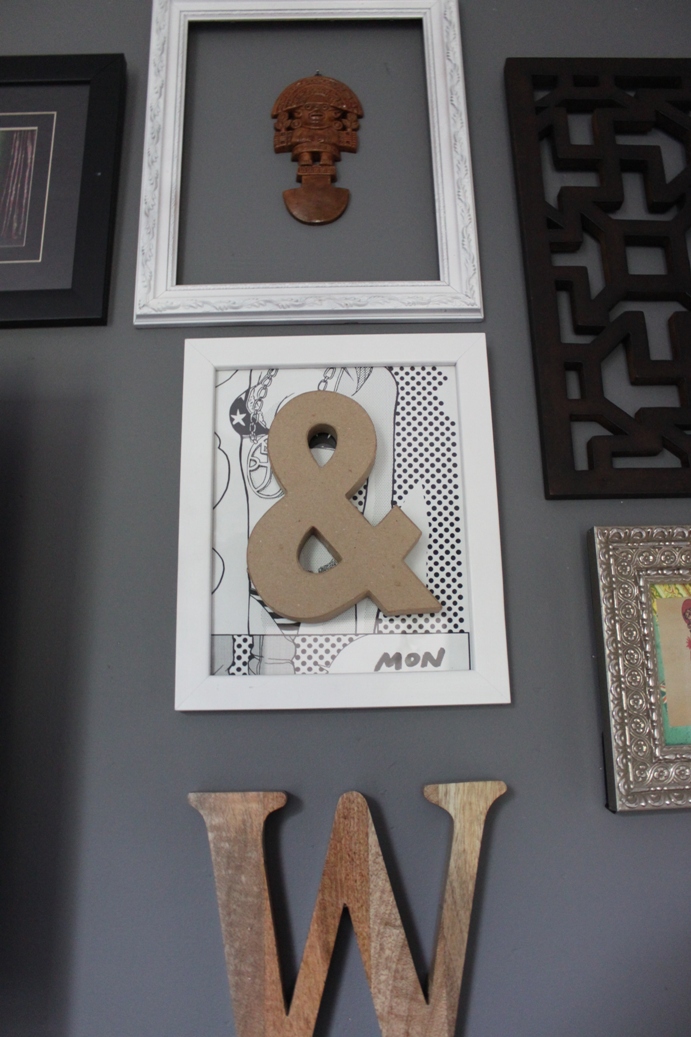 They allow you to take free samples at B&Q being the rather generous folk that they are, so I took as much as I could get away, with thinking maybe I’d use it for something in the future.Β Looking at the blank frames on my gallery wall, I figured I’d use it there.