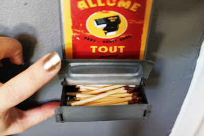 The first is a little zinc match dispenser that has a fantastic antique look.Β  I thought the colours worked well against the grey wall.