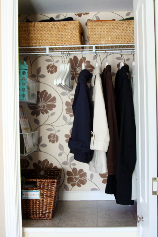 One of the things that I found myself way more excited about than I should have been when we first moved in was that we had a coat closet.  An actual proper official space to hang coats, jackets, hats and scarves that could be closed off to the rest of the world.