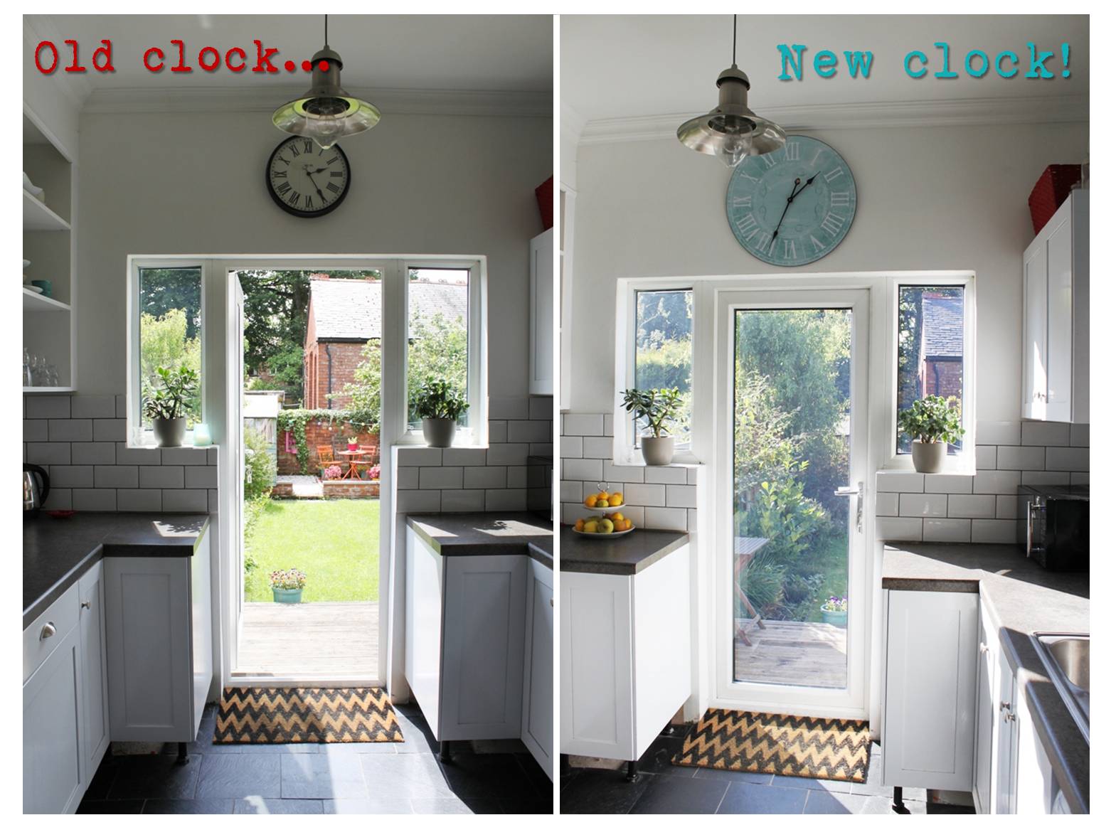 That clock is such a bargain! Love it. And the colour scheme is so funny because we are today installing a turquoise light – and our kitchen aid and other bits and bobs are red! Great minds think alike..?<br /><br />The whole kitchen is looking gorgeous, nice work!