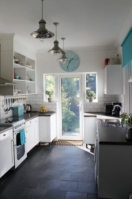 I also finally FINALLY replaced the old clock that was above the door. I wanted something bigger and fresher and found this one at TK Maxx for a mere Β£16. I love that it ties into the scheme with its soft turquoise colour.