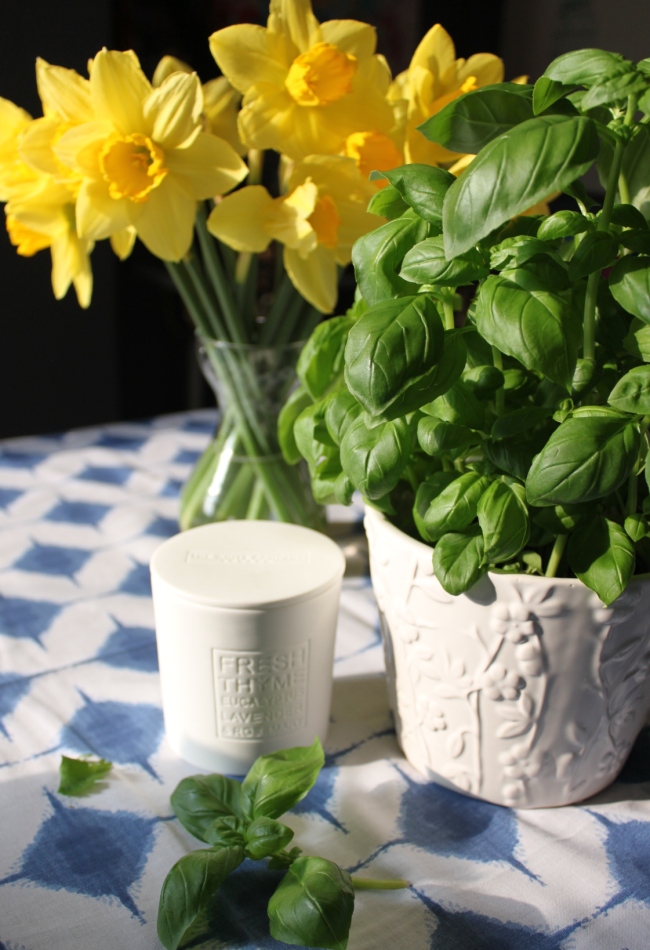 I always know when it’s spring in my home because I can finally buy fresh herbs for my windowsill and they don’t die on me!Β I used to only pot my herbs in my little silver buckets but they were starting to look a little sad and old so I swapped them out for a couple of small white plant pots I wasn’t using.Β I love how fresh they look with the burst of green from basil and parsley and they look lovely along with the new candle.