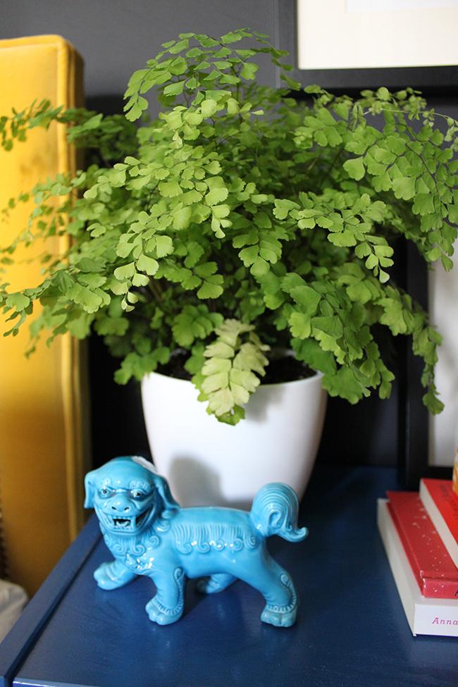 And you might have noticed I’ve incorporated some plant life in the room.Β  I’m utterly obsessed with maidenhair ferns at the moment – I just love how soft and billowy they are.Β  I think I must have about 4 of them at the moment throughout the house.