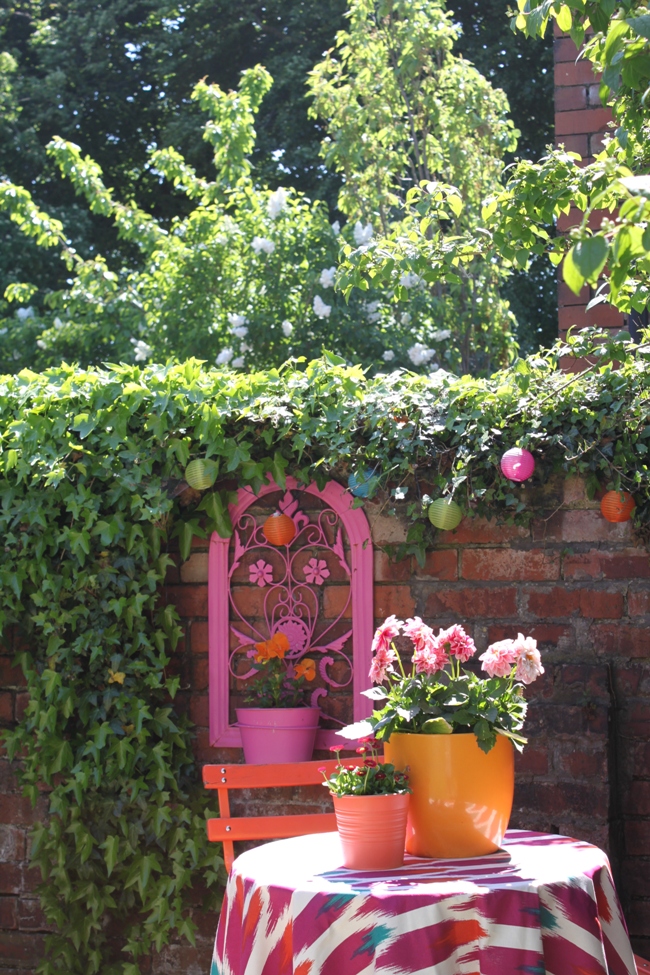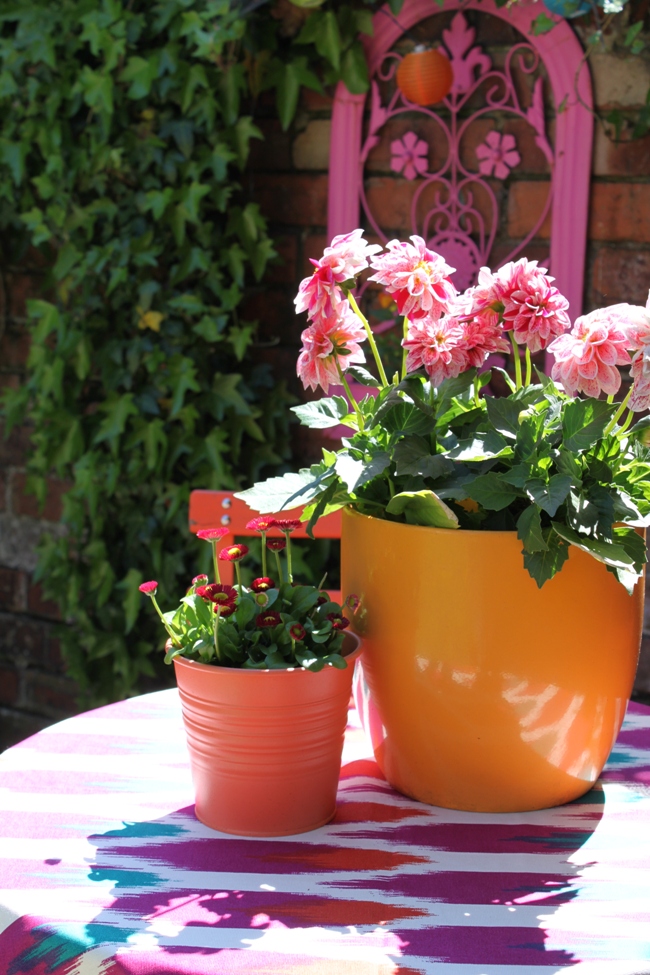 My last post about the patio was just as Spring was breaking and so nothing had really grown too much – now the garden has sprung to life, the ivy is green and full and my flowers are going strong.
