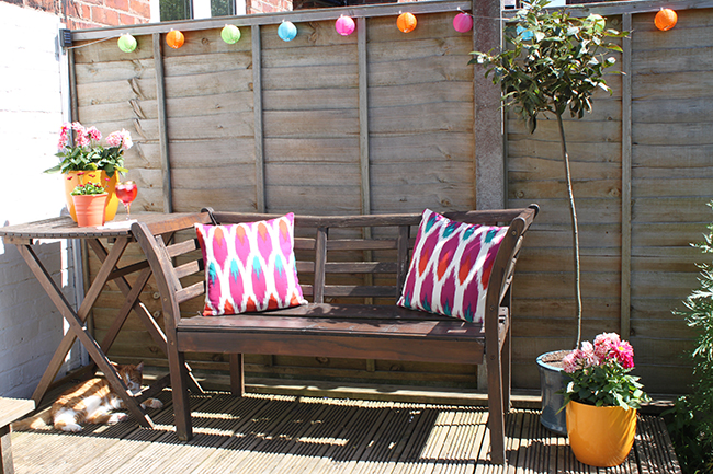 However, I did snap some pics in the garden just before I got ill and so I figured I’d share those with you! I got a new table cloth and some outdoor cushions from – believe it or not – Very’s Tex Mix collection which I just fell in love with. Because it’s barely rained here the last 2 weeks or so (which for Manchester is fairly shocking) I’ve been able to enjoy having them out!