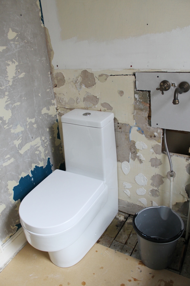 Our new toilet with NO PIPEWORK SHOWING.Β Happy Days.