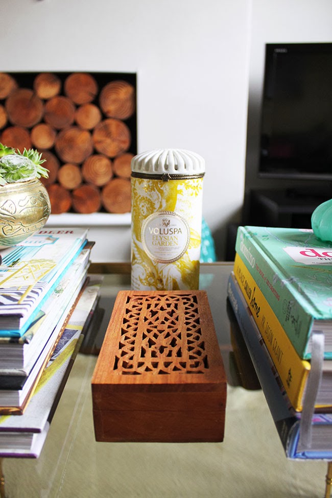 I planted some tiny succulents in a brass bowl I picked up for cheap on eBay to add a bit of life along with a little wooden carved box I got at a local thrift shop for a couple quid. I’m debating whether to paint the box or leave it natural – what do you think? And if I do paint it, what colour? I’m thinking glossy white but should I go all crazy and do it in a glossy pink instead…?
