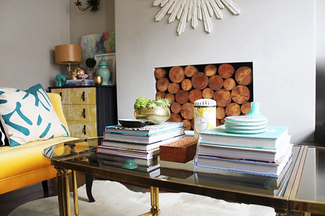 You've got some really good styling skills my friend. And I still lust hard core after your pineapple sconces. Now see your yellow is a happy yummy yellow that looks fab with your couch!