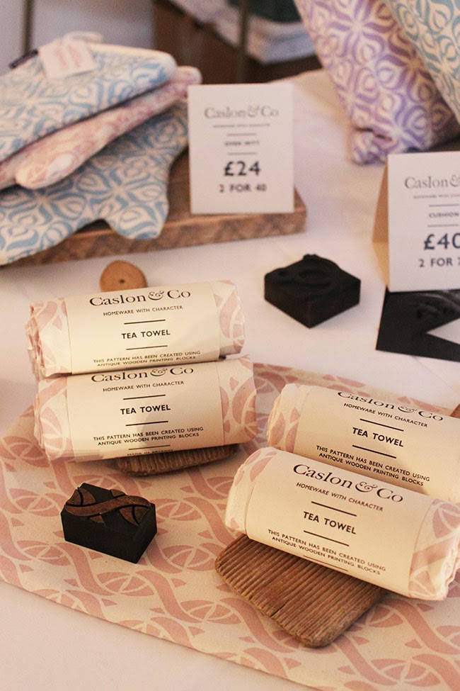 I got chatting to Calson & Co who create textiles using antique printing blocks.  These little blocks would have originally been used by printers to add decorative flair to their books and posters and they’ve been reintroduced to the world in a brand new way.  Lovely, no?