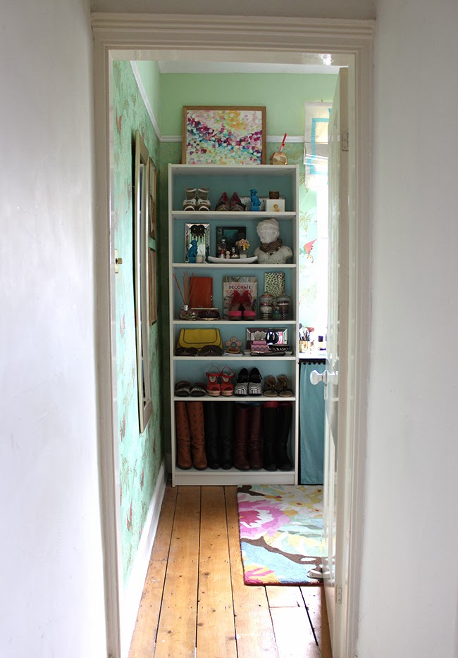 I decided to put show it off horizontally on the top of my shelving unit (and finally decided to hang my Leigh Viner prints on the wall)…