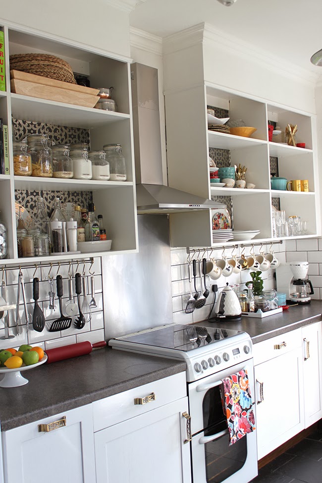oh my god, I LOVE your glass jars. I've been drooling over glass jars with those metal clasps for the last six months; can't wait to move to a new place and actually organize a kitchen with them. Thanks for the kitchen porn!