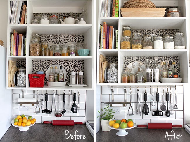 So, I can see from the 'before' and 'after' pics that you're definitely not eating your "five a day", also, where's the pic of Wayne with a big "Wayne" label across his forehead, huh?! :-D<br /><br />It looks great and if I had open shelving in my kitchen (which I don't), I'd do the same. I like the old fashioned labels and it definitely helps