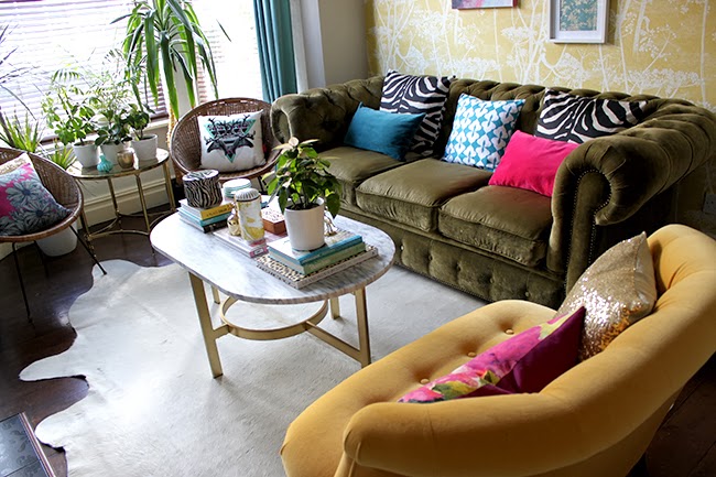Isn't it a beauty! The gold legs are very sexy! Such a shame about your cancelled holiday but this makes up for it, I suppose! Besides, it's nice to splurge on a few special things that you both love every once in a while. I'm glad you've not had to get rid of your previous vintage coffee table though, I rather liked it and it's great to see part of it still in the room. xxx