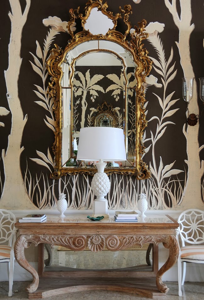 My buying guide today gives a little reminder that warmer days are indeed ahead and will hopefully transport you to exotic climates where palm trees and pineapples are as common as the rain and cloud cover is here – two motifs you often see in Hollywood Regency style.