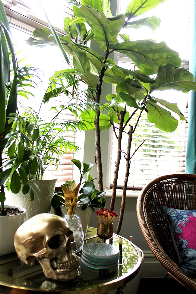 I love the look of fiddle leaf figs in pictures, and it looks so good with your other plants, but I'm scared to own one for two reasons: I don't have a green thumb, and my toddler is a bit of a destroyer of things. Perhaps one day :) <br />Loving your gorgeous accessorising and styling, and your chic new blog look! <br />xoxo