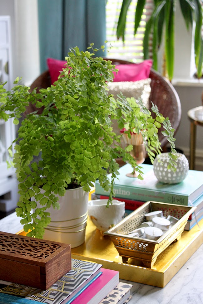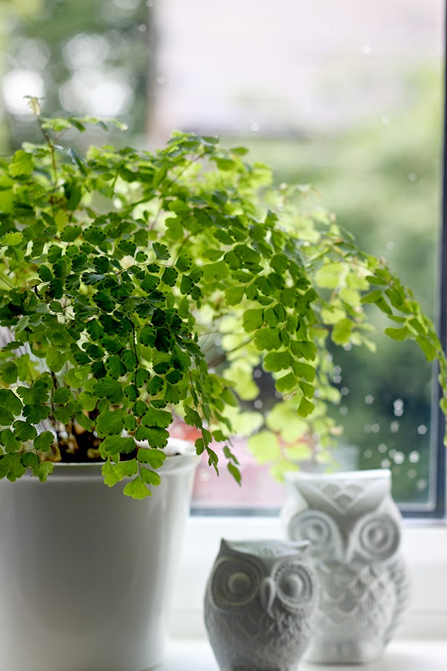 Now, I seem to be utterly obsessed with Maidenhair ferns. I get mine in my local Homebase for a mere Β£3 each and while they can be a wee bit temperamental, I do find if they get enough (indirect) sunlight and water (weekly), they seem to thrive quite nicely.