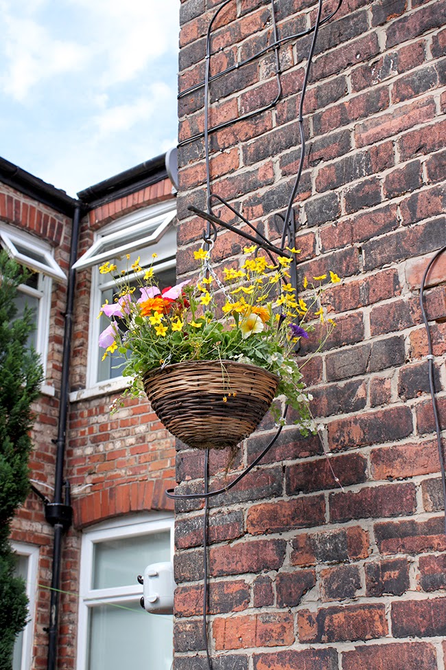 I potted up a few little blooms, cleaned up our bamboo chairs, hung up a hanging basket and called it done…