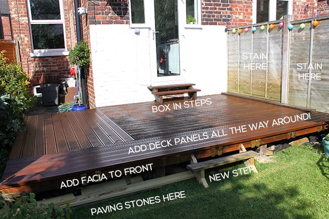 Originally the fence panels were a greeny colour and I got tired of it really quickly! I think just keeping everything neutral and tying it with the deck will look a bit more uniform and then we'll add lots of colour and contrast with furnishings/accessories :)