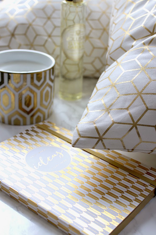 Anyway, the gold and white stuff – that cute little notebook is from Fox & Star which is my new favourite place for pretty stationary.
