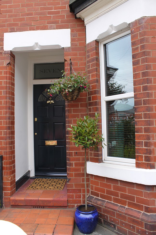 The front entrance and front garden in our home was given a little bit of a refresh last year. I pulled up all the old planting at the front, the rusty-red door was repainted in Farrow & Ball’s Hague Blue, shiny new hardware was added and I added a transom with our house number ‘etched in’. I also gave some of the outside paintwork a new bright and happy coat and placed a new doormat in front of the door.