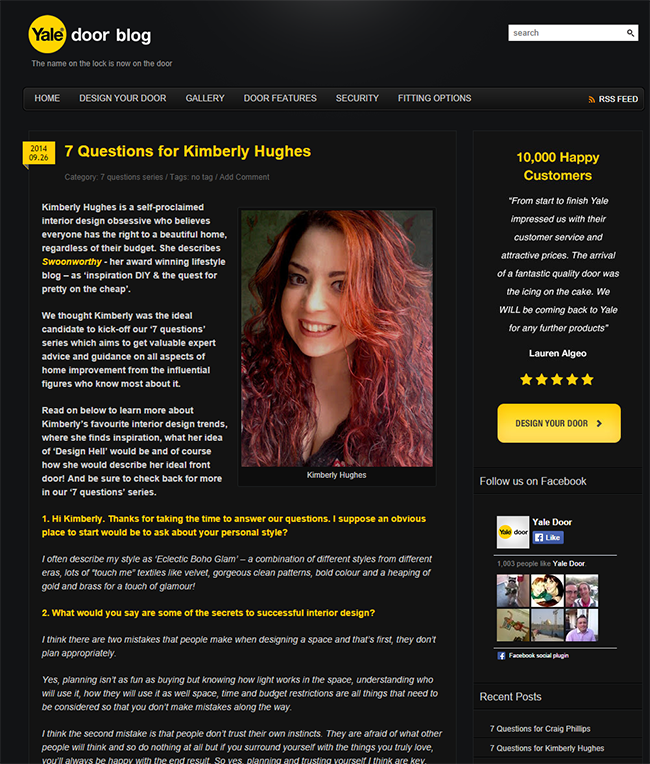 First off, I was interviewed on Yale Door’s blog for their new series “7 Questions with…” which aims to bring valuable expert advice on all aspects of home improvement from “the most influential figures who know most about it”. (Me? Are they talking about me? WTF? ;)) You can read the entire interview here.