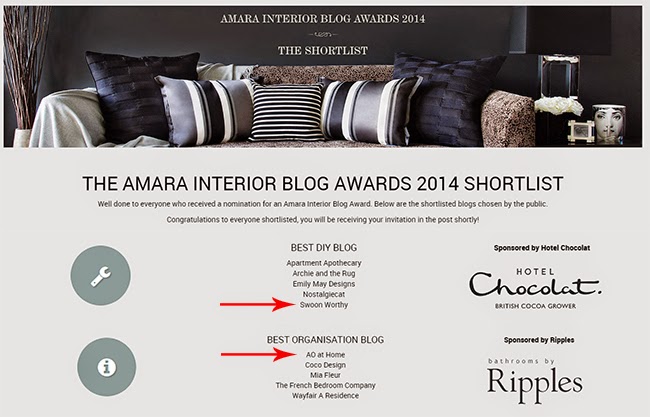 Not only that, but it was a double awesome amazingness because as you can see, not only did Swoon Worthy shortlist in the Best DIY Blog category but AO at Home also shortlisted in the Best Organisation Blog category. I am feeling very very proud and so excited for the upcoming event in November where the winners are announced.