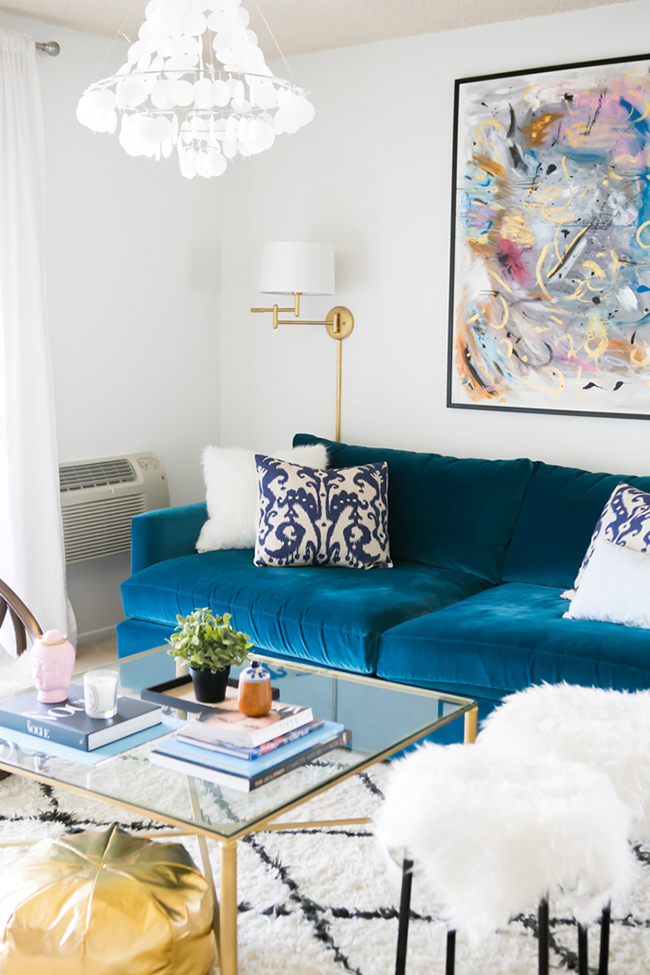 So when I see deep blue mixed with velvet on a sofa? I’m all over it. (Not literally, that would just be weird – I mean, I don’t even know these people, can you imagine? “Oh my god what are you doing in my house?!” “What? I just wanted to cuddle your sofa….” *cue horrified expression of homeowner*)