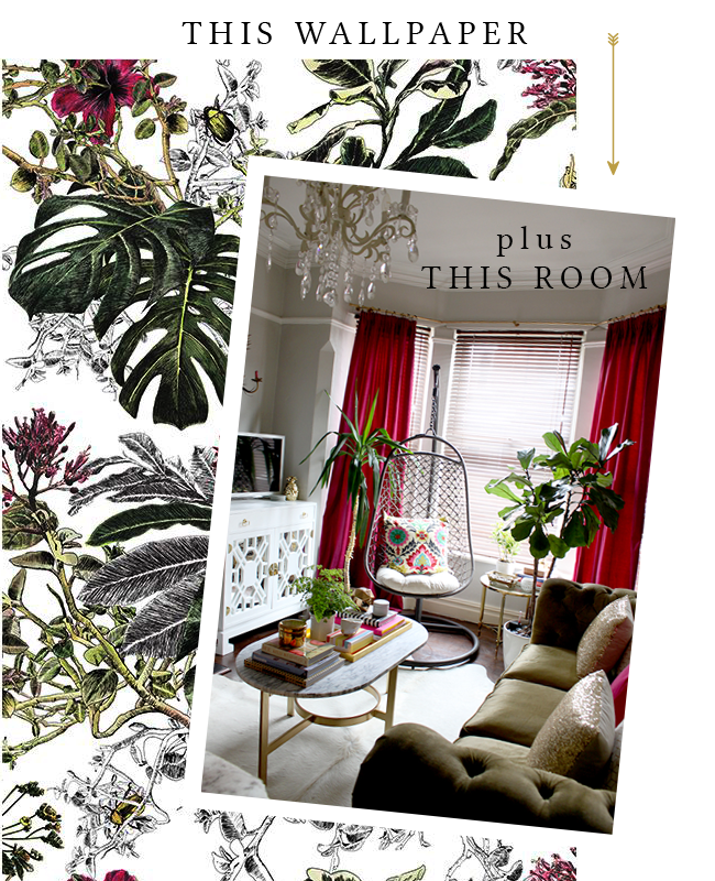 When I chose the wallpaper in my living room, it was a similar scenario – the colour scheme of olive and raspberry was picked up so well in the paper but more importantly, it was the tropical feel of plants and blooms that highlighted all the greenery that lives in this room!