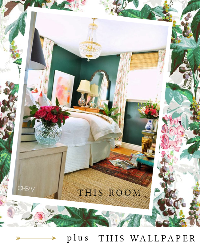 One of my lovely readers, Melinda, recently emailed me asking for a bit of help with choosing a wallpaper. She had her inspiration image at the ready but was wondering if there were any wallpapers that I thought might work with the bold colour scheme of jades and pinks. Immediately, a wallpaper came to mind (and it was genuinelyΒ immediate because I had just spoken of the wallpaper on the blog as it was a new favourite).