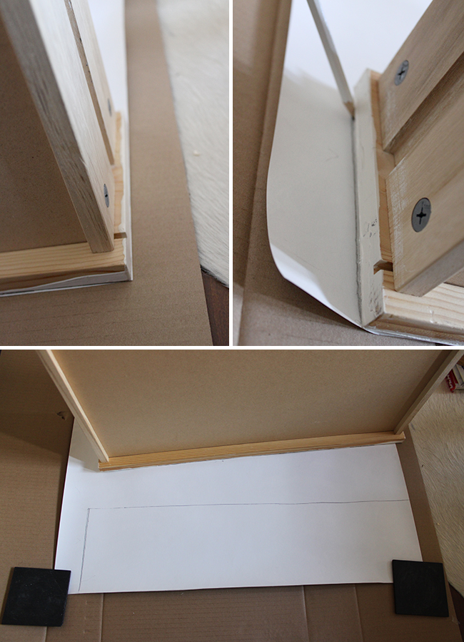 I then pasted the paper to the drawer front (make sure it’s the right way around!), smoothing it down and making sure it aligned perfectly at the edges.