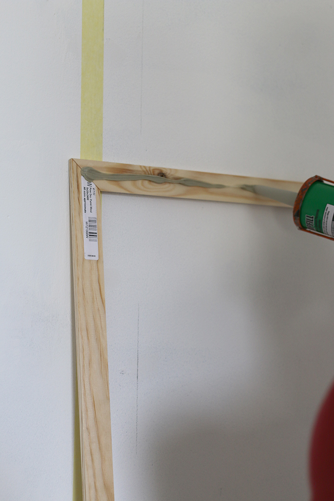We removed the tape first! There were pencil marks on the wall that we used as a guide already so we were able to use a lot of the measurements that were already there. I say ‘a lot’ because we had to make a few adjustments as we went! :) xx