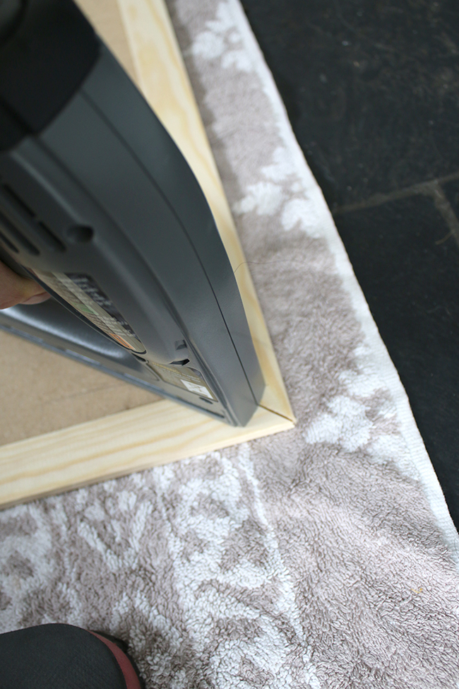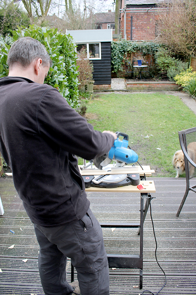 It was actually a lot easier than we’d anticipated, just a bit of a long and drawn out process! Wayne cut the pieces to size using our mitre saw, I then stapled them together and applied glue to the back. Then while Wayne held it up to the wall, I had to adjust the panel using wood templates so it was perfectly level and at the correct height. Obviously this is not shown in the slideshow above because I couldn’t hold the camera at the same time and I’d not set up the tripod because I’m a terrible blogger.Β Once we were confident it was in the right place, we both pressed it onto the wall and Wayne finally used small panel pins to hold it into place while the glue dried.