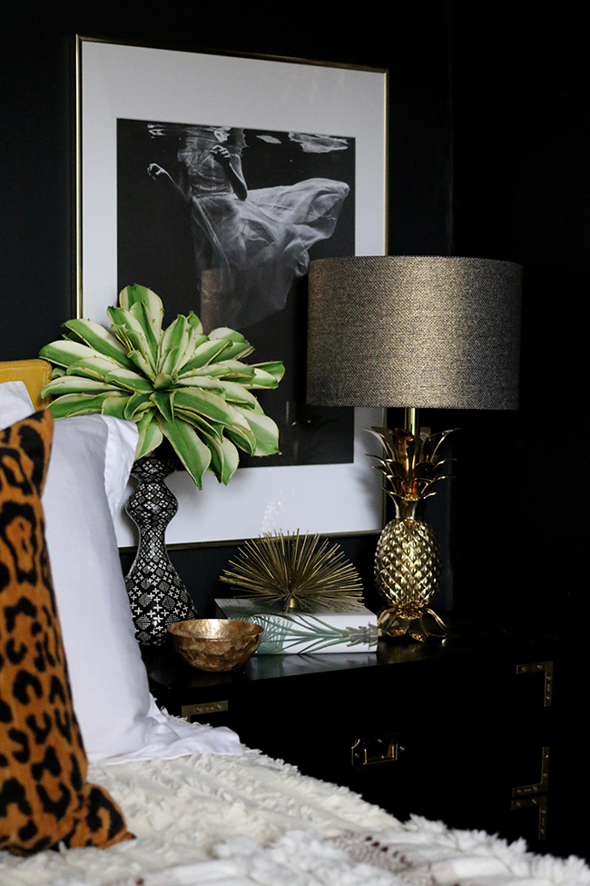 I love it! So glam. The bedside tables look amazing black, and I love the new prints and the hanging plant. It looks super cosy as well as stylish! And there’s still colour – black and white count! :-) xx