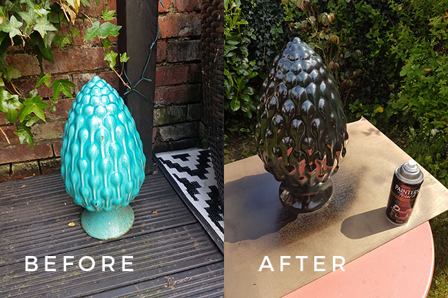 You might also remember these turquoise ceramic artichokes I’ve had literally for YEARS (they were in my living room until the great turquoise removal of 2015). Β I sprayed them with a glossy black spray paint (Rustoleum Painter’s Touch in Black Gloss*) that I already had and they instantly got a chic new look.