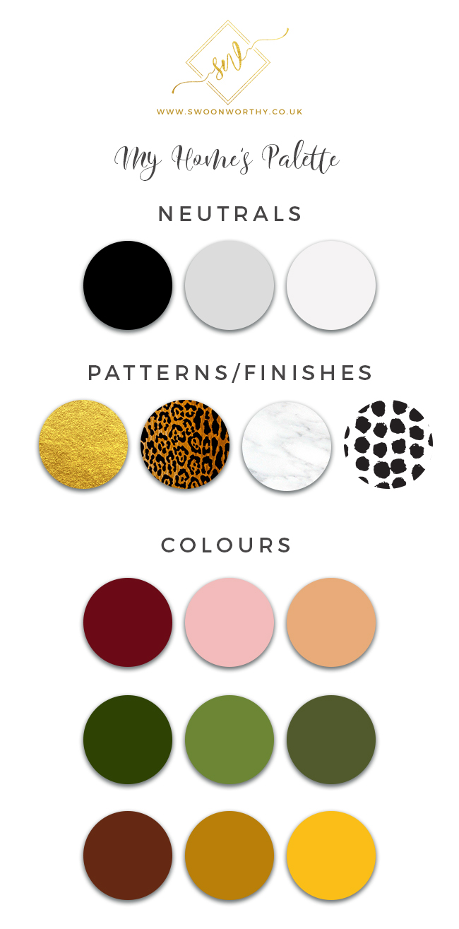 When creating a palette for your own home, I’d suggest considering those colours you’ve loved for years. If you’re not sure, take a look at your wardrobe for clues. What colours make you feel good and confident? These are the ones you want to surround yourself with. Pick maybe 3-4 colours that work well together and in isolation – different shades of the same colour can work well too. The choose a few neutrals – I’d always recommend black as one of them. And then, finally, any patterns or finishes you are especially enamoured with. Of course, I’m going to recommend gold or brass – I know it’s a trend at the moment, but I promise it has staying power and it warms up a space like no other.
