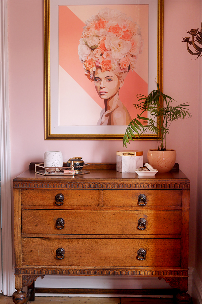 I talked earlier about how much I am still loving blush (you can catch up on my thoughts here) and while I realise it’s a big trend, I’m just not ready to let it go easily. I have recently become pretty enamoured with the combination of pinks, peaches and burgundy alongside gold accents and so I saw this room as my opportunity to have a little fun with this palette.