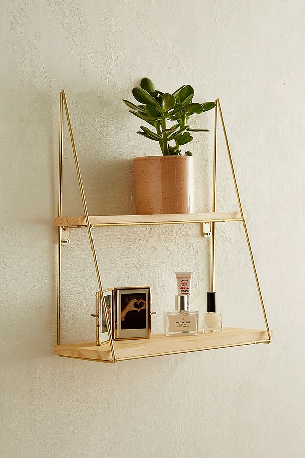 If you are struggling on floor space, then why not choose something that can be wall hung? I quite liked this little Kensie wall shelf from Urban Outfitters in gold and natural wood and as it’s only £24, you could easily hang more than one.