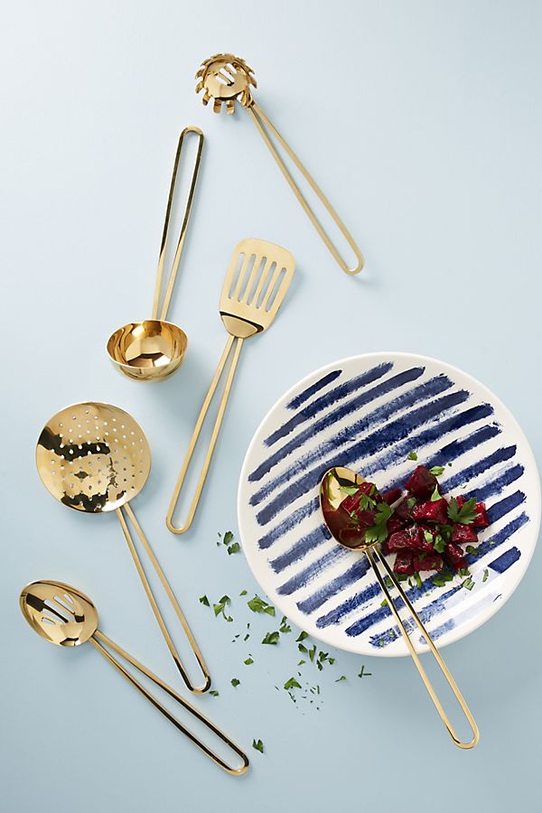 I’ve had gold utensils in my own kitchen for quite some time but they are so pretty, I don’t want to hide them away. Choose a cute vase or pot and stash them next to the cooker or hang them from a utensil rail for a lovely dash of glam. These ones are from Anthropologie.