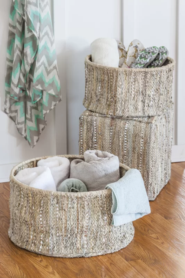 I came across these ones over on Wayfair that are made with leather and you get a set of two in this gorgeous textural fabric for less than £60 (they are currently on sale as ‘end of line’ – marked down from over £100 so get in there quick!). I really love the soft greige colour and I adore the boho vibe it has.