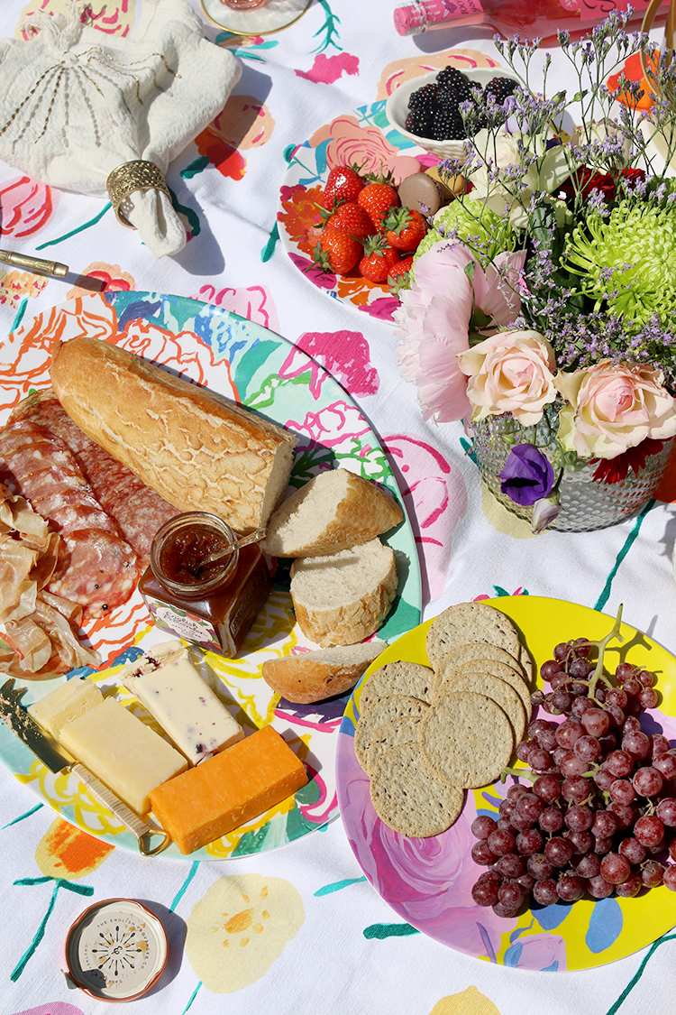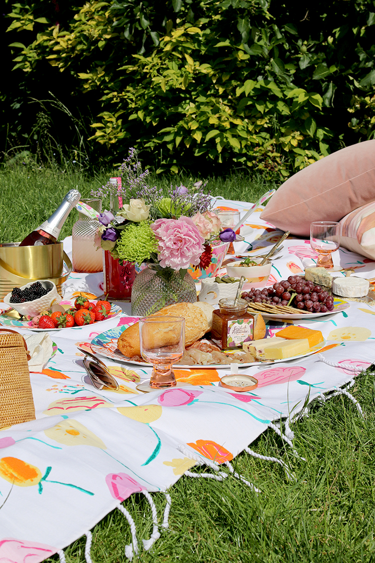 They have a new summer line created by artistΒ Bridgette Thornton called Paint + Petals which is so bold and colourful and I knew it’d be perfect for giving my picnic a fresh summer vibe. Best of all, most of the pieces are melamine so you don’t have to worry about breaking anything and they are super light-weight so they are easy to cart to your nearest park – or in my case – my own back garden!