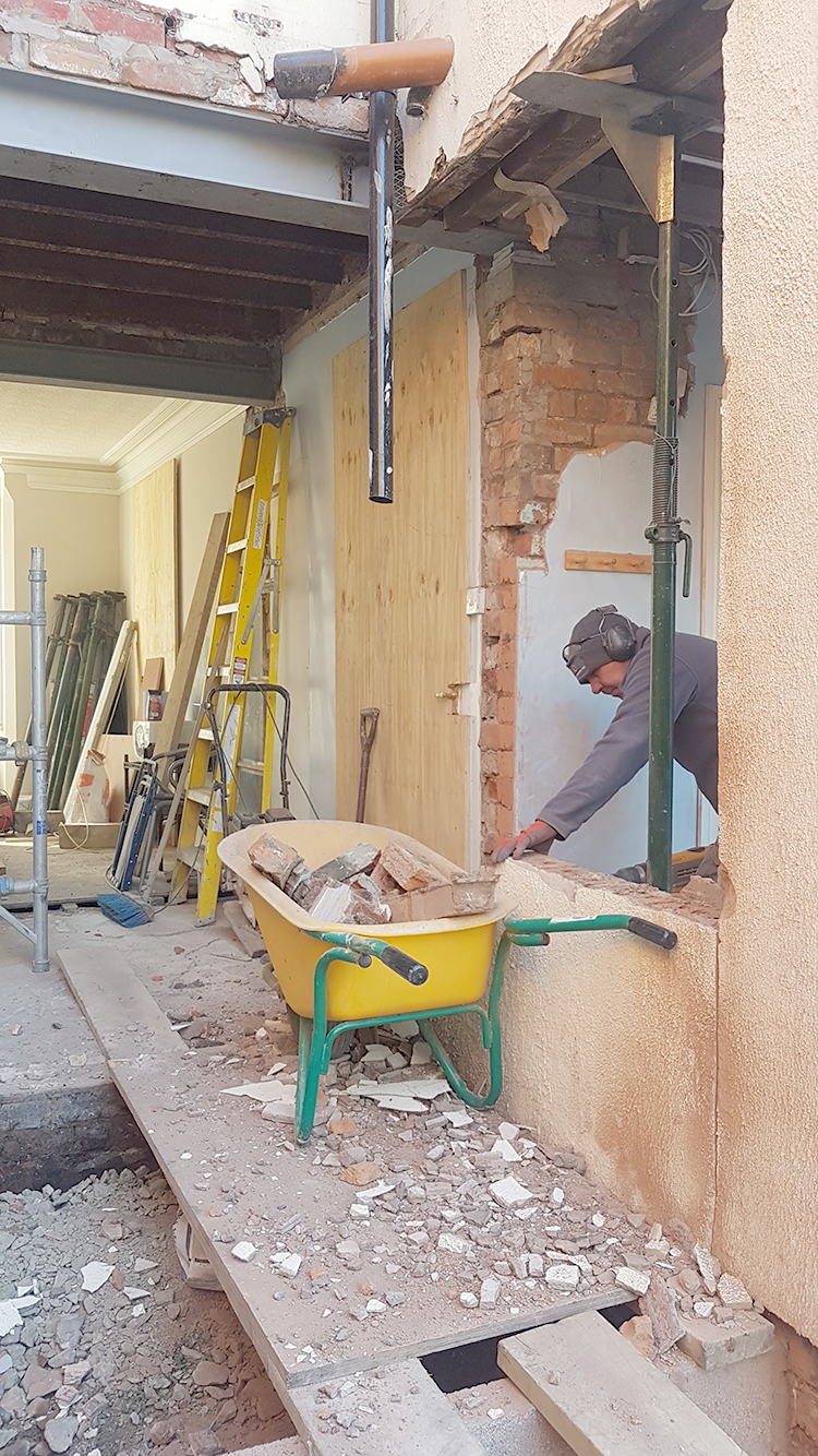 There was originally going to be a steel beam put into this space but as things often go on an old house, an existing steel beam was uncovered there already which saved us a few pennies and they were able to just bust out the wall and rebuild it within a couple of days. My bank balance celebrated.