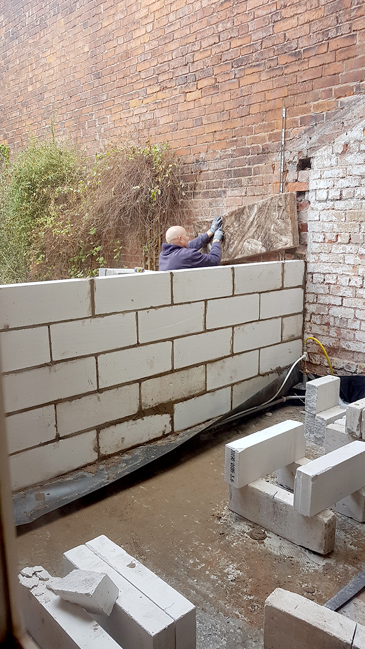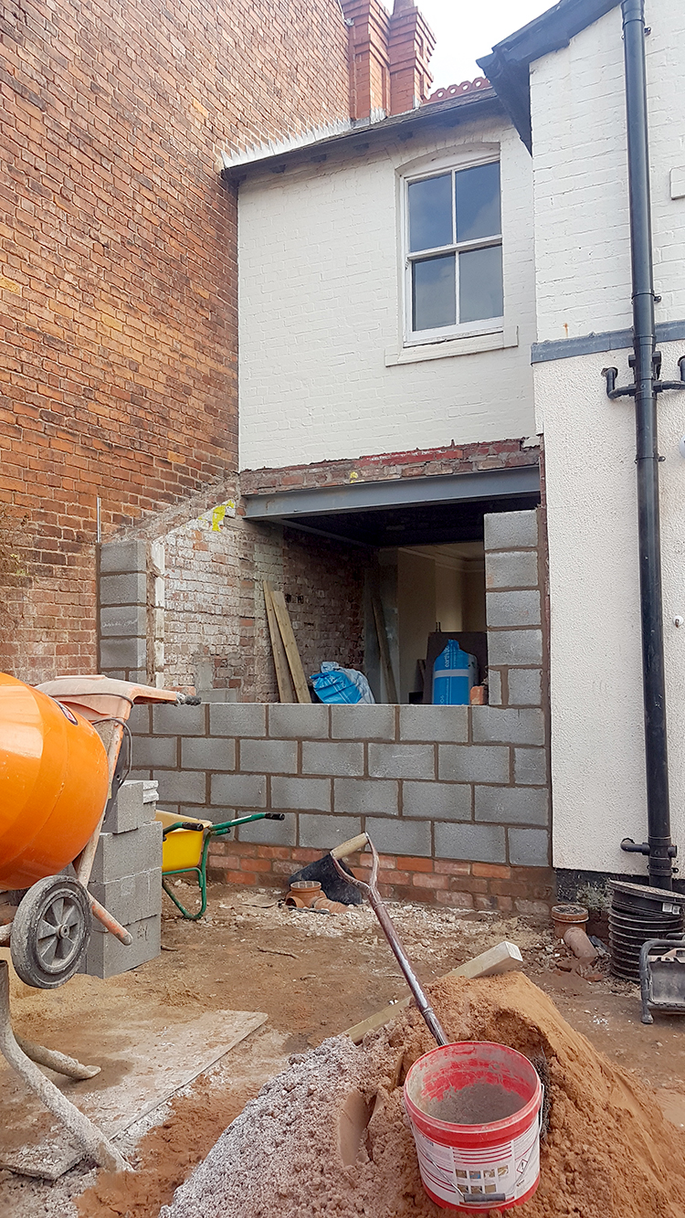 Once that wall was gone and rebuilt, the walls of the new extension started going up – always exciting as we would finally be able to understand the new space and it didn’t take long at all for the blocks to be put in place. The extension was finally starting to take shape!