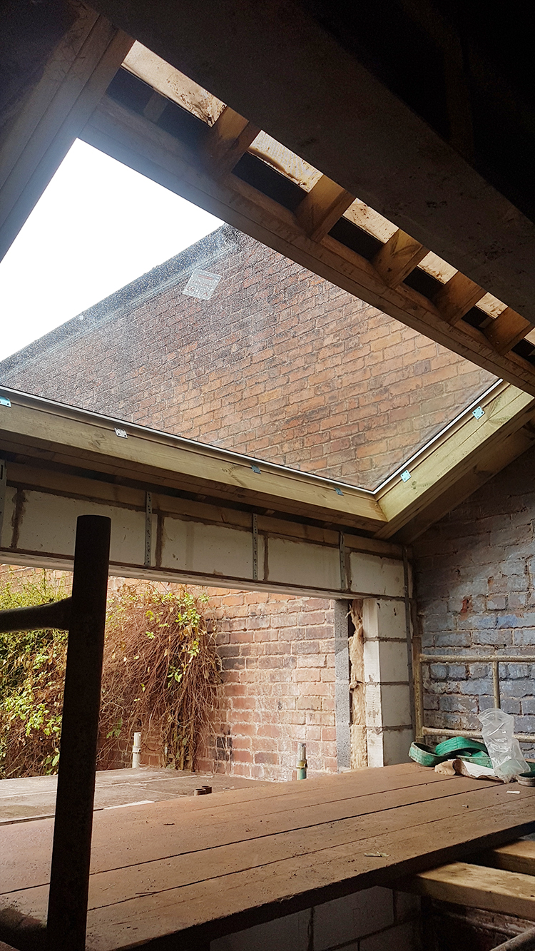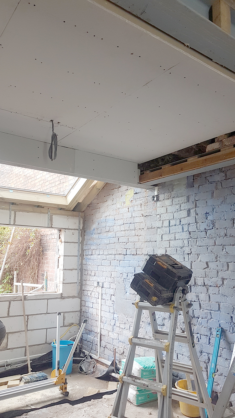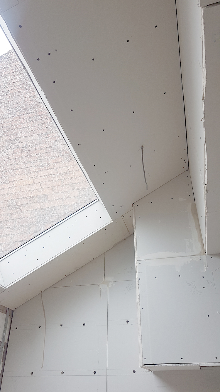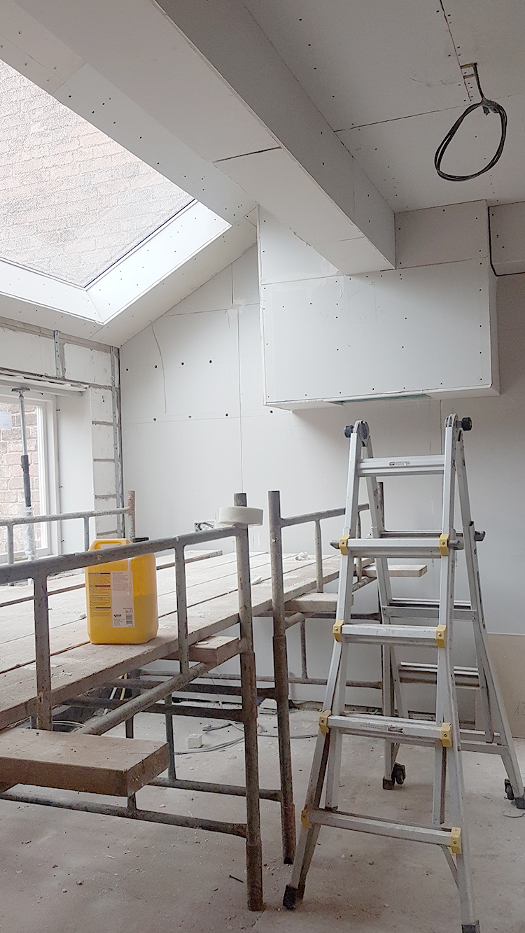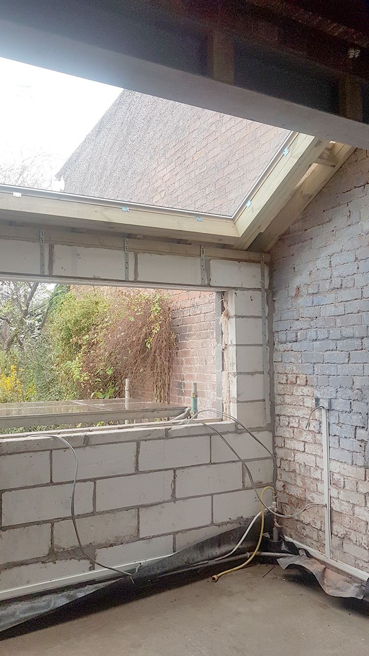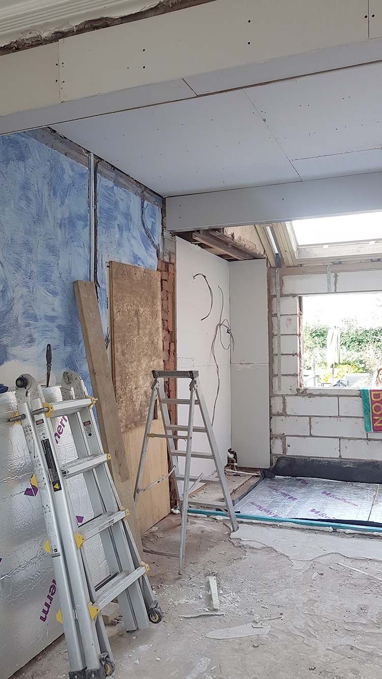 So the last three weeks since I posted about our renovation feels like it’s flown by. We are nearly at the stage now where we have what appears to be an ACTUAL SPACE. The walls went up as quickly as they came down, the roof light and window installed, new subfloors created, first fix for electrics and plumbing happened and we’re actually at the stage where we’re plastering!