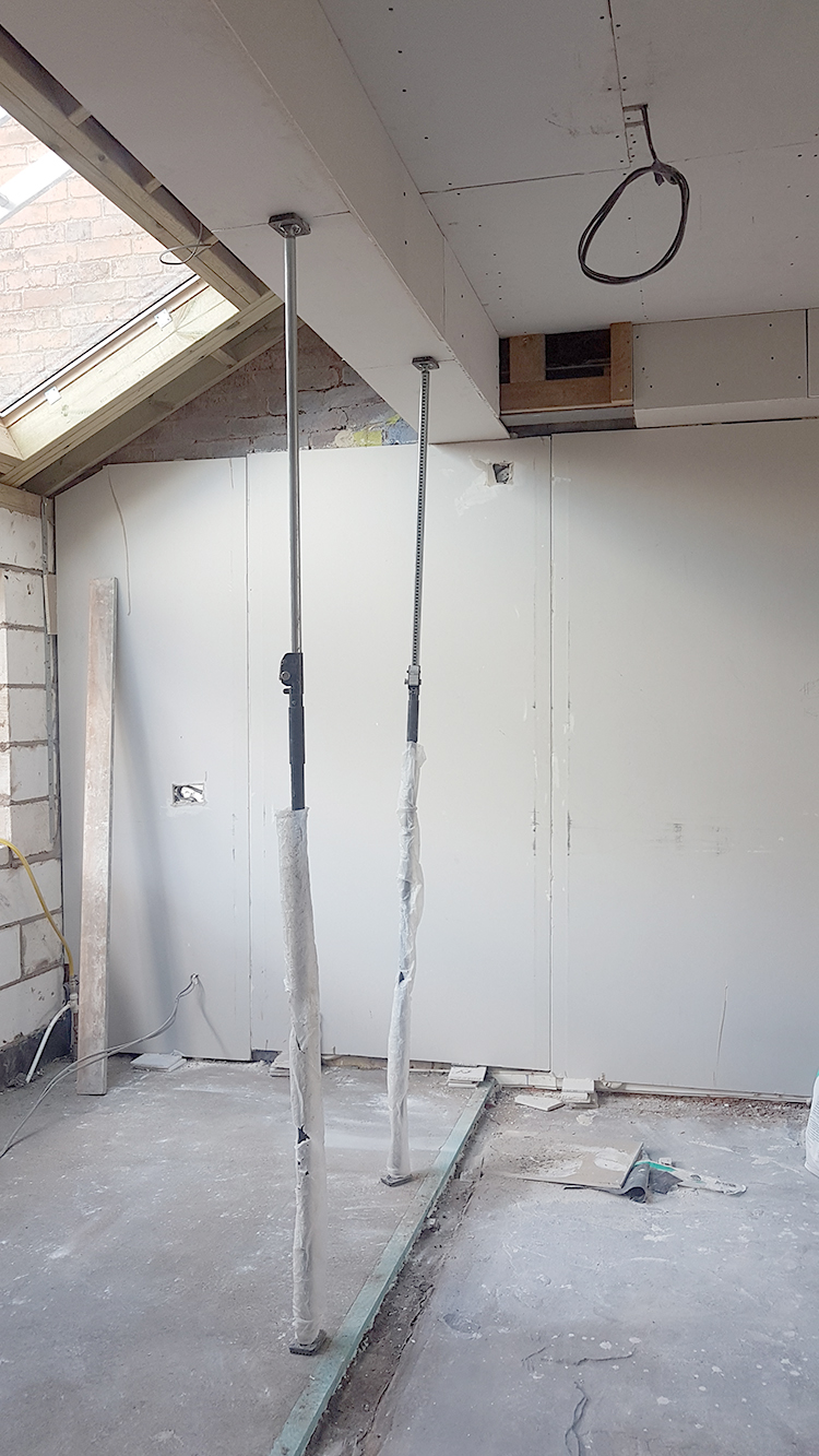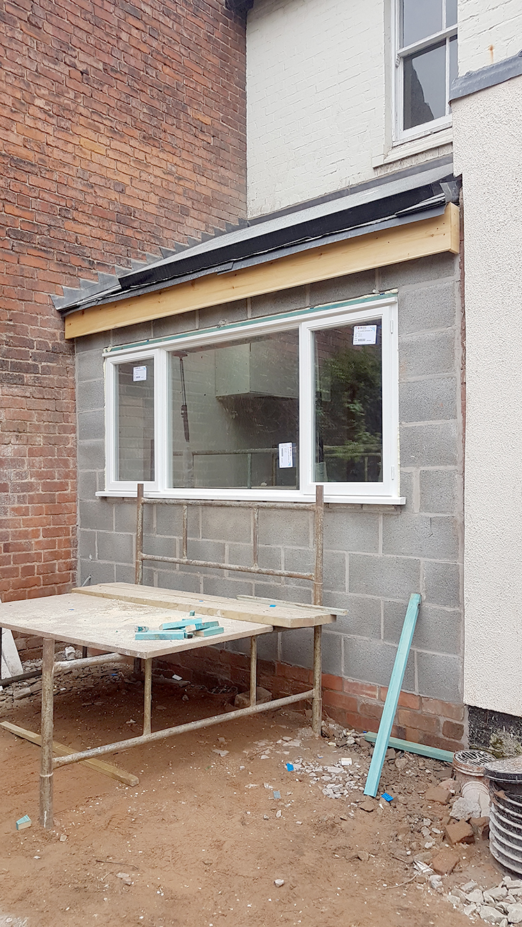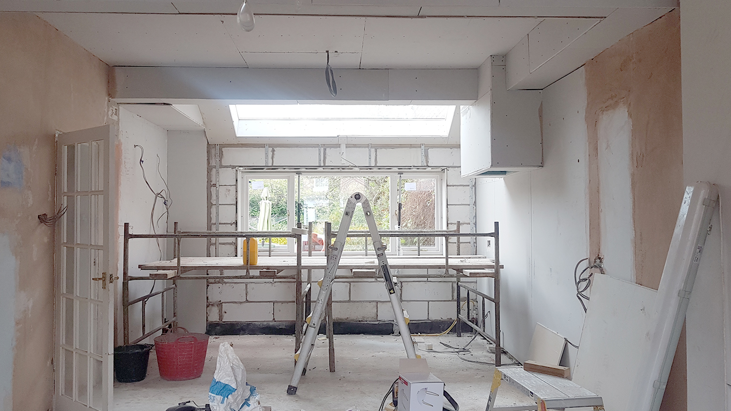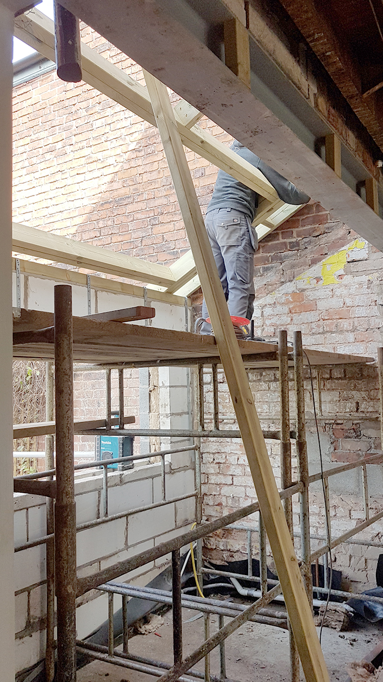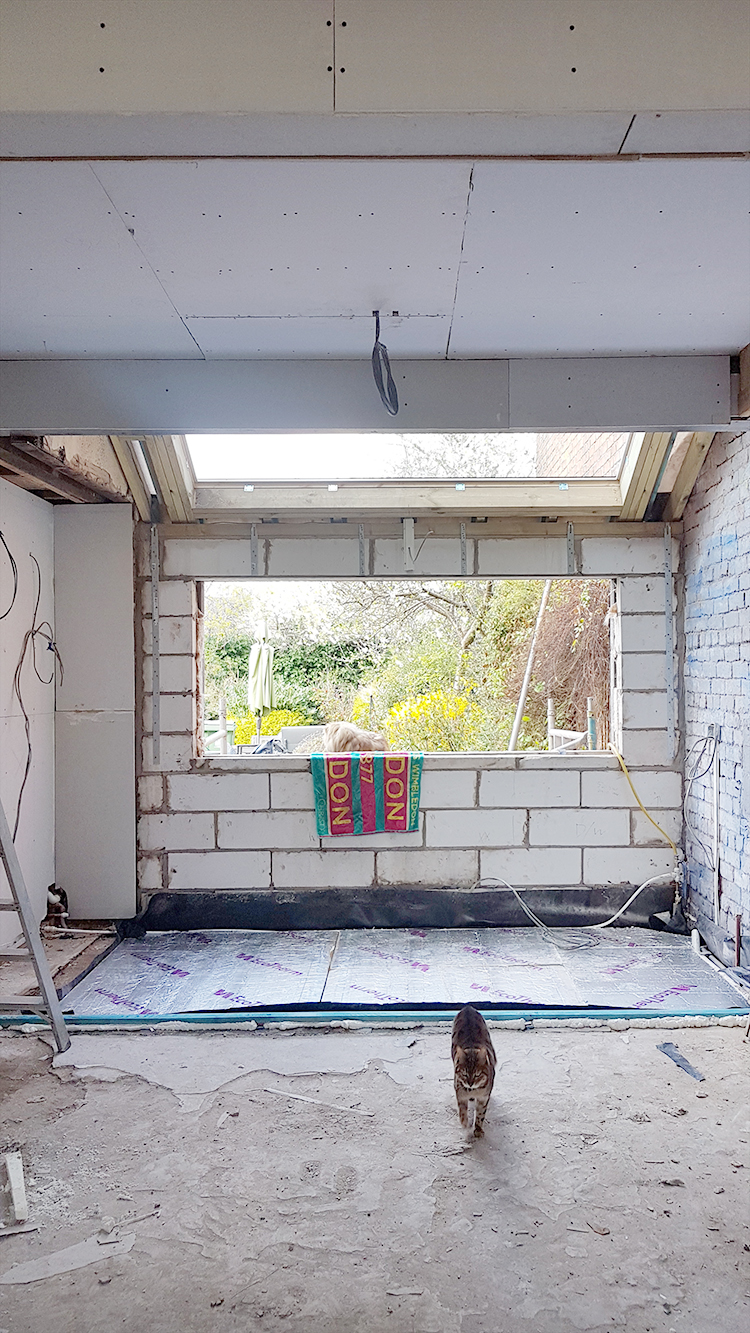So the last three weeks since I posted about our renovation feels like it’s flown by. We are nearly at the stage now where we have what appears to be an ACTUAL SPACE. The walls went up as quickly as they came down, the roof light and window installed, new subfloors created, first fix for electrics and plumbing happened and we’re actually at the stage where we’re plastering!