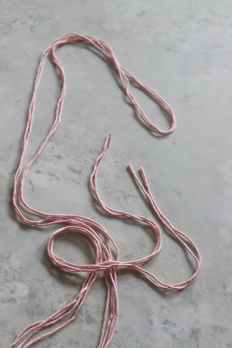 A couple of notes… I used all of one skein (ball of yarn) and a bit of another but if you want to make the project slightly less expensive, you could probably get away with just one especially if your fringe is not as long as mine is or you were happy for it to be a little less full. I also chose the Bamboo Yarn because I like the soft sheen it gave – the threads have a bit of a ‘glossy’ finish. However, you could use a yarn that’s 100% cotton if you wanted a more fluffy/softer look.