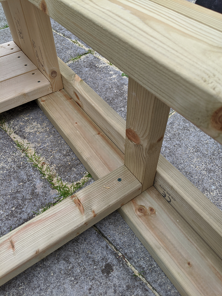 For the legs using 38mm x 89mm x 2.4M treated lengths of wood: